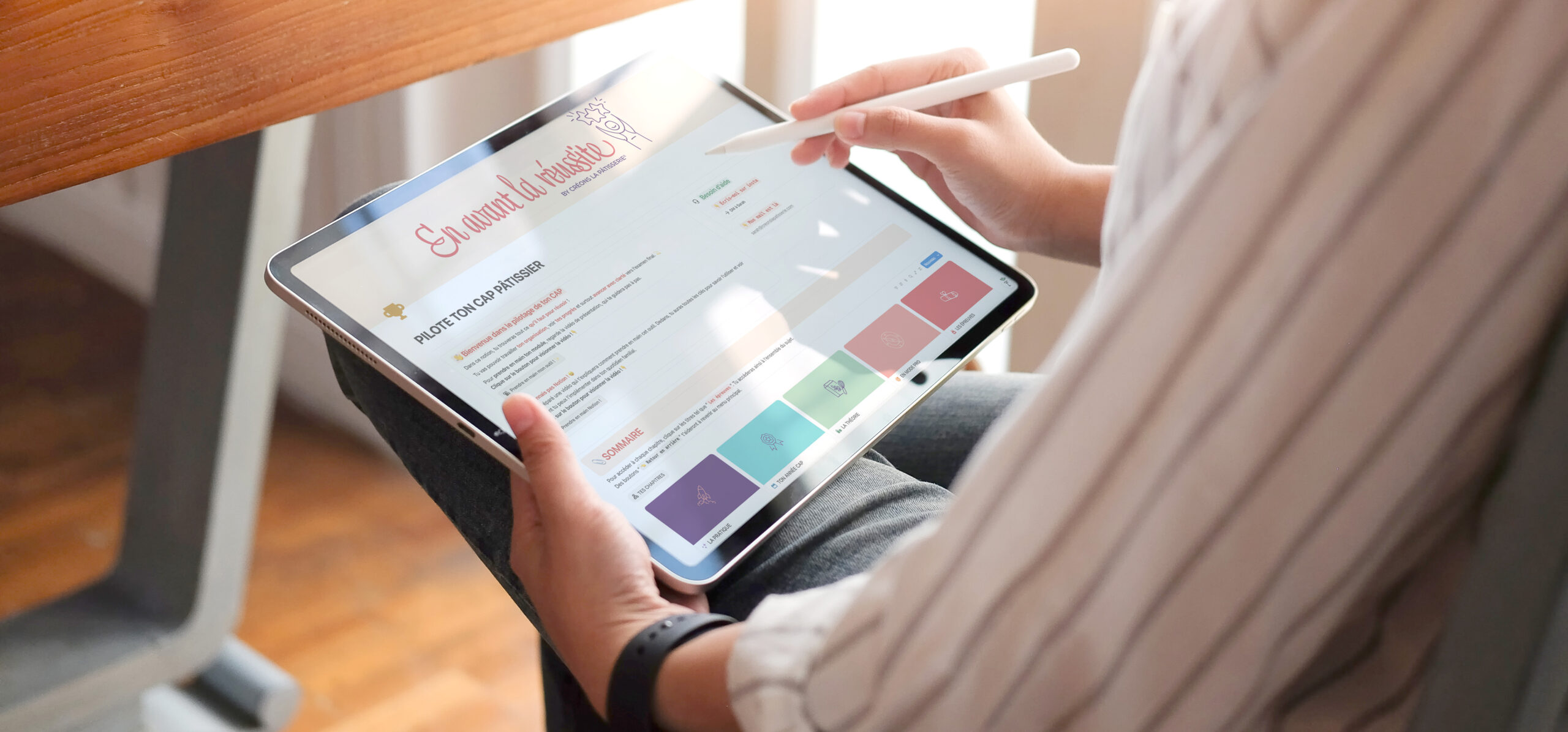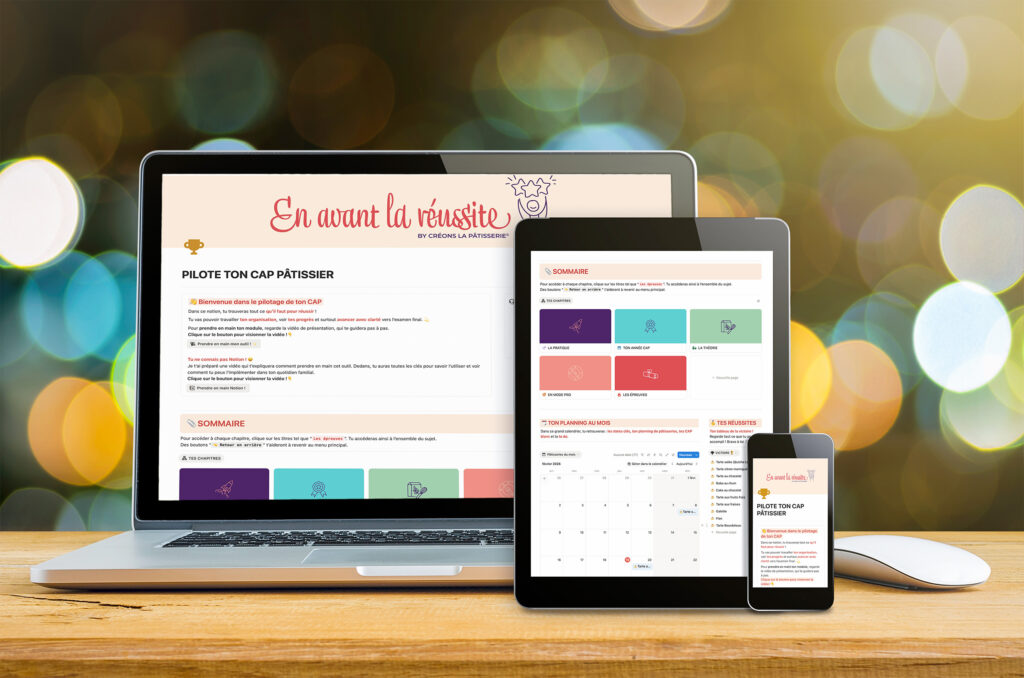 Tu y verras beaucoup plus clair dans ta progression au CAP Pâtissier. Tu as tout à disposition sur ton ordinateur et ton téléphone via internet et l’application ! Tu n’es plus seul•e face à tes questions !